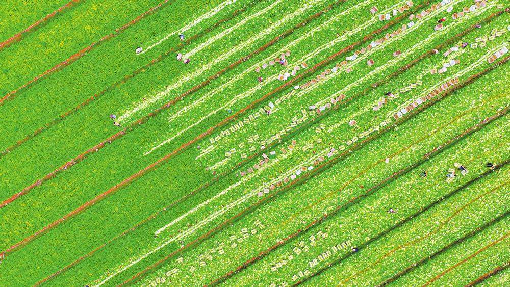 产业工人采收蔬菜。 本报通讯员 王勇 摄