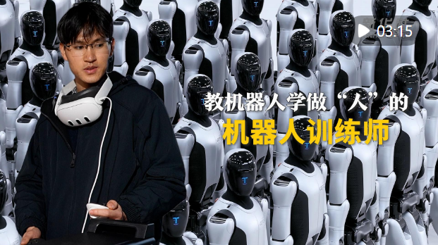 2001年出生的吴东波是一名机器人训练师。他的主要工作,就是教工业人形机器人学做“人”。工业机器人学会一个简单动作,至少需要重复300次,机器人训练师的目标就是让这些机器人将来能够替代人工去做重复性、危险性比较高的工作。