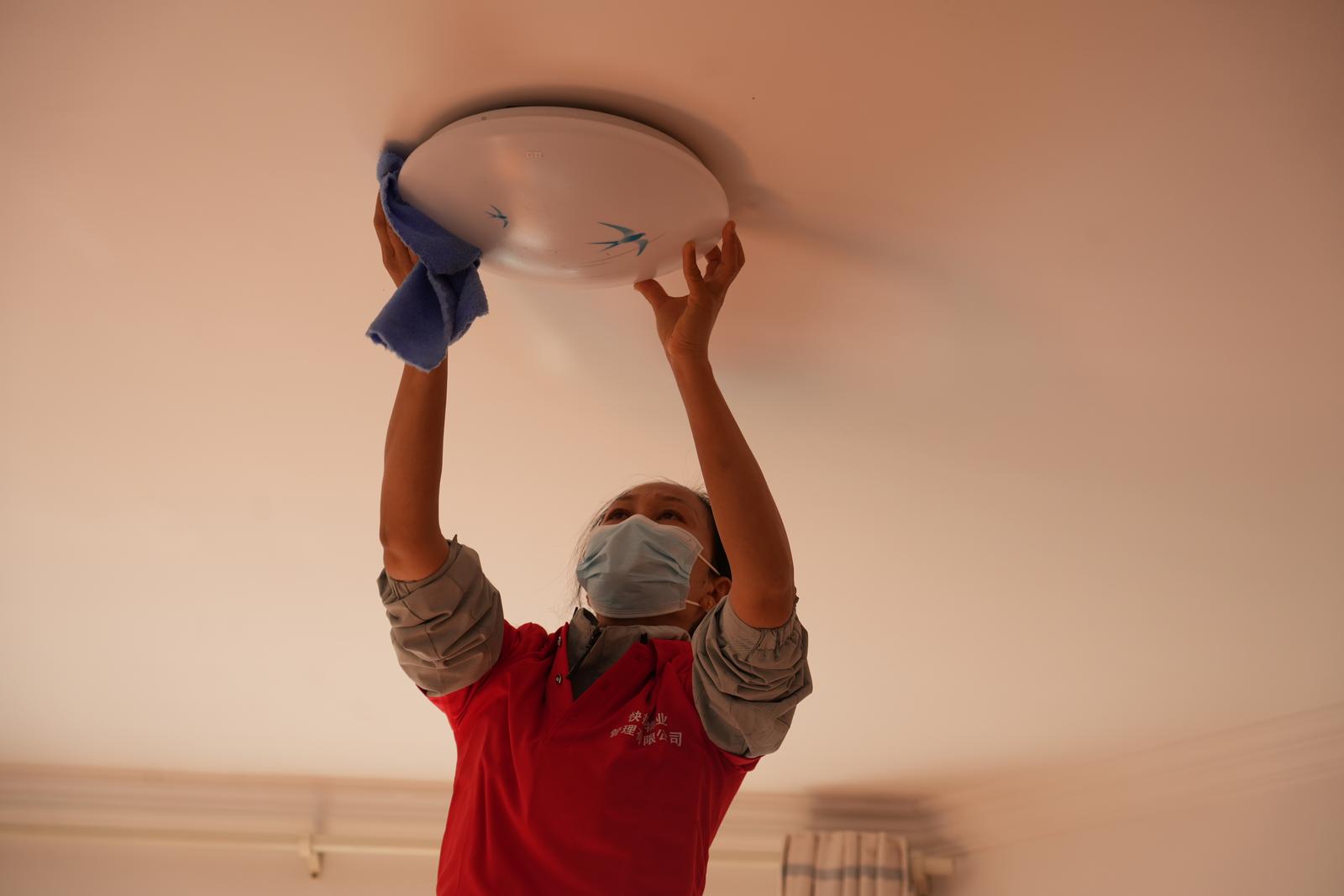 在山水蓝岸二期的一户居民家中,7名保洁人员正有条不紊地穿梭于各个房间,开展全屋深度保洁工作。她们手持专业工具,细致擦拭厨房油污、清扫地板灰尘、整理家居杂物,原本略显杂乱的房间渐渐变得窗明几净、井然有序。“年底了工作也比较忙,家里也需要一次彻底的大扫除,特别是玻璃比较难清洗”杨女士笑着说,“请专业的家政公司,他们弄得比较干净,可以说我们是非常满意的。”