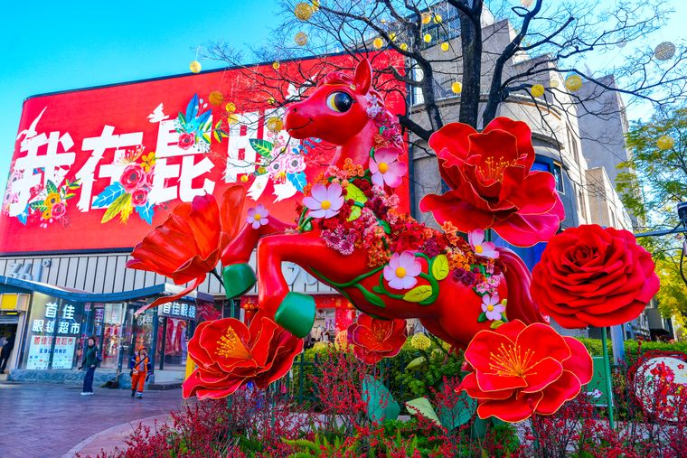 昆明市园林绿化局介绍“五花迎春”系列主题活动。机场高速“奔腾”八骏花雕、南屏街“观山—观水—观春城”艺术花雕、巨型瓦猫鲜花拱门等特色花雕气势如虹、寓意美好;翠湖公园郁金香、金殿名胜区茶花、昙华寺牡丹等各大公园鲜花盛宴轮番登场;斗南花市、景星花鸟市场等特色花市年味浓郁;翠湖城市绿道、钱王街等花街一步一景;滇池绿道四季不重样的花带尽显浪漫,五大花景将传统年俗与花卉艺术深度融合,以“神马精神”“财‘猫’双全”等美好寓意为创意内核,让春城成为名副其实的“鲜花博物馆”,诚邀广大市民游客共赴这场山水与鲜花交融的城市之约。