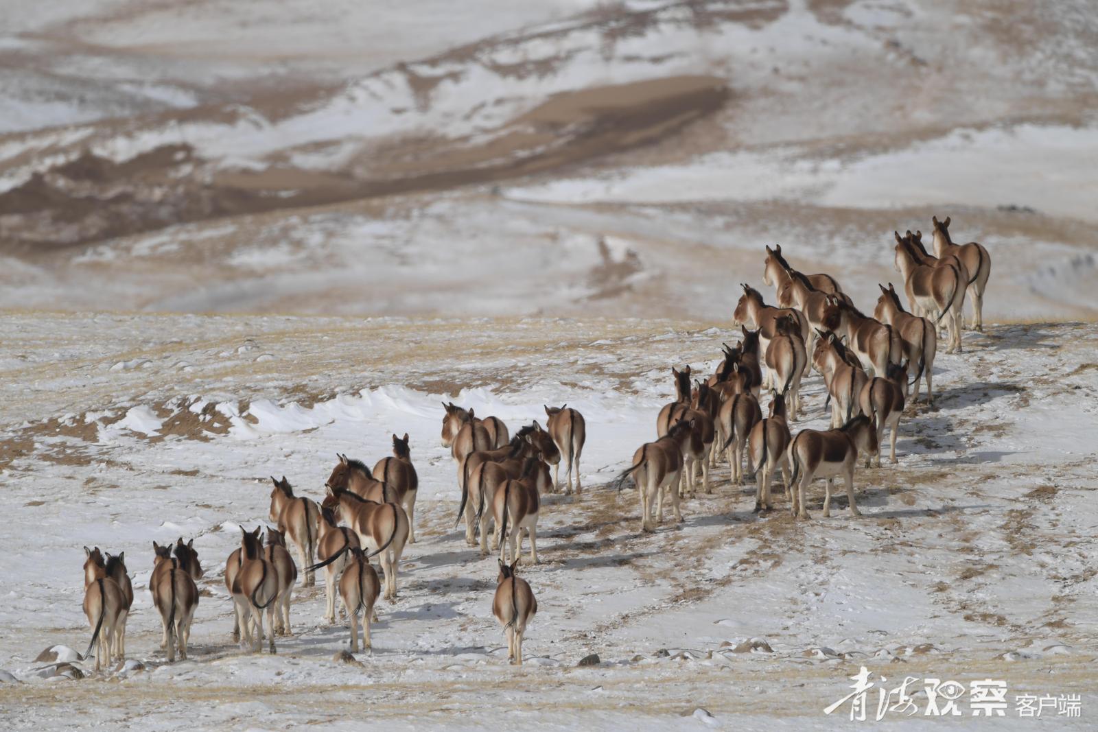 这一路遇到的野牦牛之多,连巡山队员都觉得意外:“这个季节它们通常该在海拔更低、更暖和的公路沿线或牧民冬季牧场附近。现在跑到近5000米的高山草场,可能是山下雪太厚,找不到草吃了。”