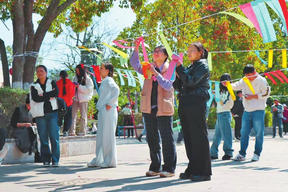 大年初一,位于嶍峨古镇的玉溪市非物质文化遗产展示馆刚刚开馆,就迎来了一批参观者。大家在彝族服饰、四弦琴、传统手工艺作品等展品前驻足细看,或聆听讲解,或拍照留念,感受玉溪非遗的独特魅力。在峨山县博物馆,观展者通过文物、历史图片、文献资料,了解峨山的历史变迁、民族风情和红色文化,增进对家乡文化的认同感和自豪感。参观者袁一丹说:“我一大早就过来了,想了解峨山彝族的文化、历史,收获挺大的。”县图书馆门口举办了百科知识竞猜活动,题目既有春节民俗、成语典故,也有峨山历史文化知识、趣味科普知识。市民或凝神思索,或三五成群讨论,答对者欢欢喜喜领取小礼品。
