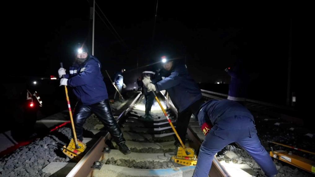 兰州铁路局中卫工务段中卫南高铁线路车间的工作人员,每晚都要对高铁线路设备进行精细检查与维修,保障旅客列车安全平稳运行。