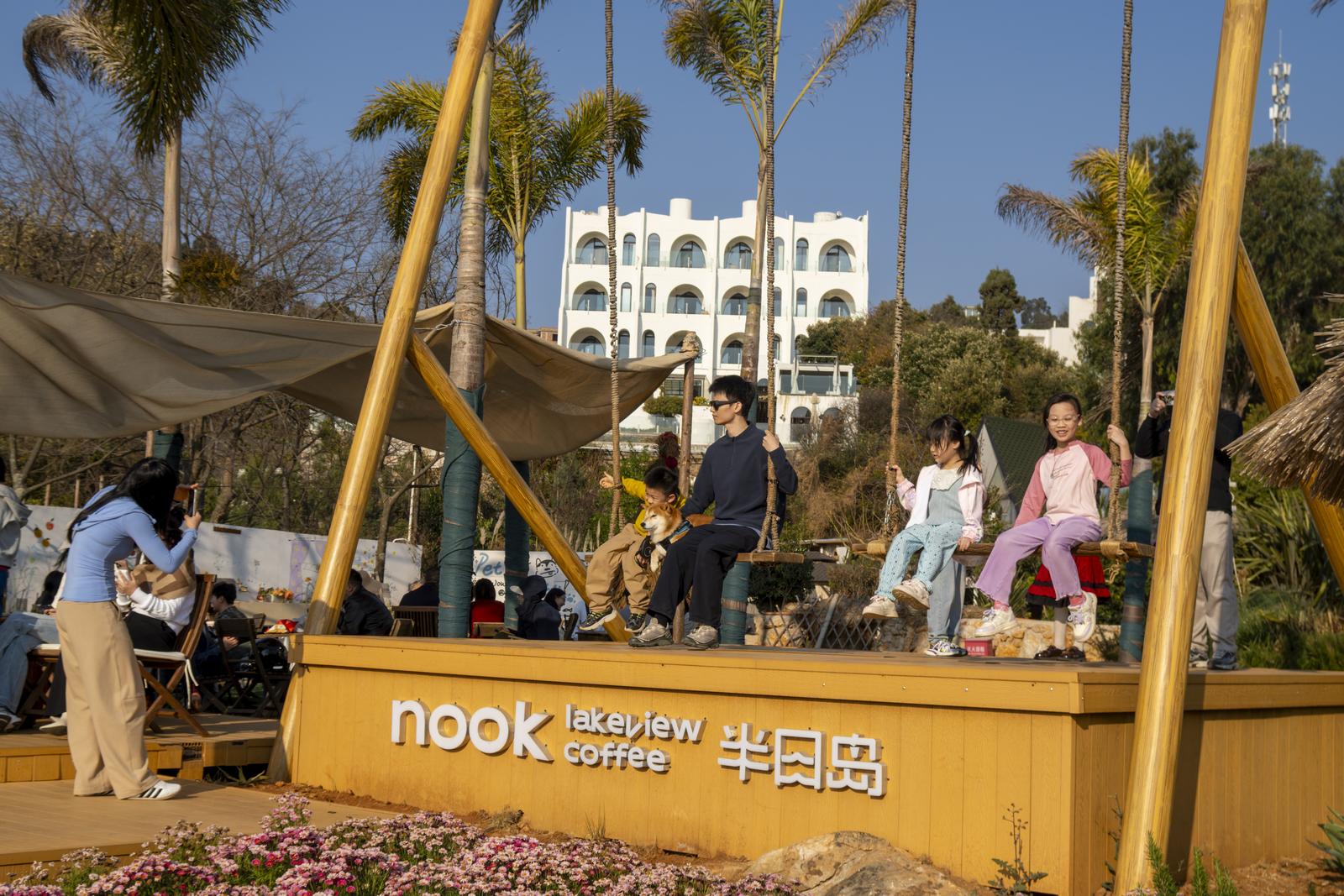 春节作为全年文旅消费的黄金旺季,家庭出游、旅居过年成为主流,广大游客不再满足于“走马观花”式的旅游,更追求有品质、有温度、有记忆点的休闲体验。从“赶路式旅游”到“沉浸式休憩”,以文旅融合为切入点,包括半日岛在内的环抚仙湖精品咖啡店,已然成为旅游度假的“新空间”——这里兼具社交属性与情绪价值,让游客在时光放缓中,沉浸式感受自然与人文的深度交融。“我们想做的就是‘情绪经济’,让每一位顾客来到这里听听歌,看看日落,喝喝咖啡,都能有放松身心的感觉,也能把朋友圈的照片铺满,来到这里就像度过一个短短的假期。”半日岛咖啡负责人张曼玲说。