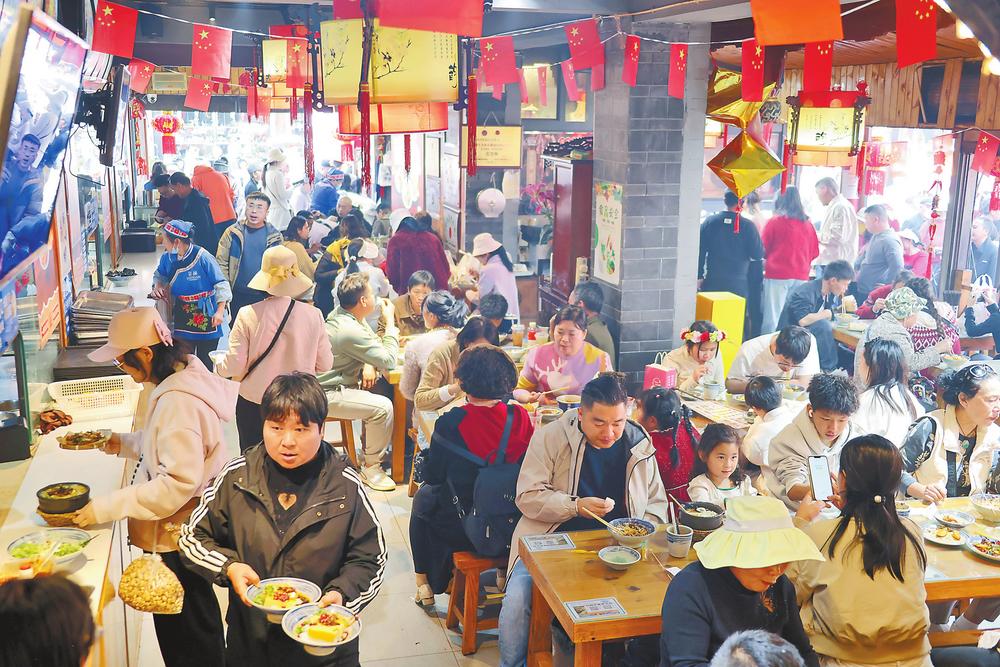 游客在昆明官渡古镇品尝云南地道美食。云南日报记者 黄兴能 摄