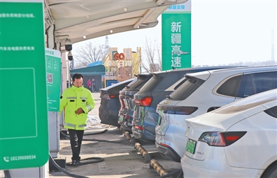 位于昌吉回族自治州的连霍高速五工台服务区,司机王可可开着新能源汽车驶进充电站,使用600千瓦的超级快充,不到10分钟便充满了电。“喝杯咖啡的时间就能满电出发,非常方便。”王可可说。