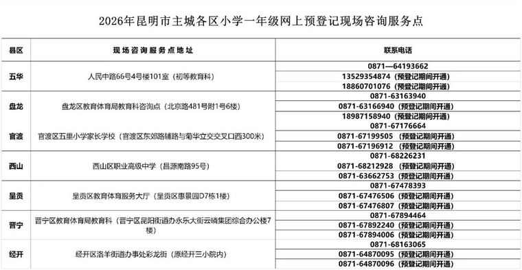 2026年昆明市主城区小学一年级入学预登记工作常见问题解答(附现场咨询服务点)