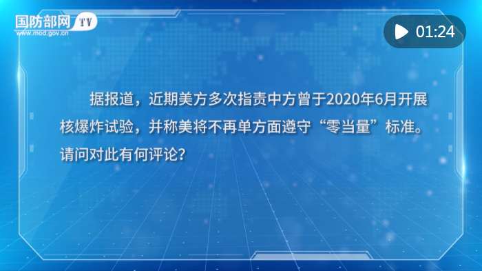 记者:据报道,近期美方多次指责中方曾于2020年6月开展核爆炸试验,并称美将不再单方面遵守“零当量”标准。请问对此有何评论?