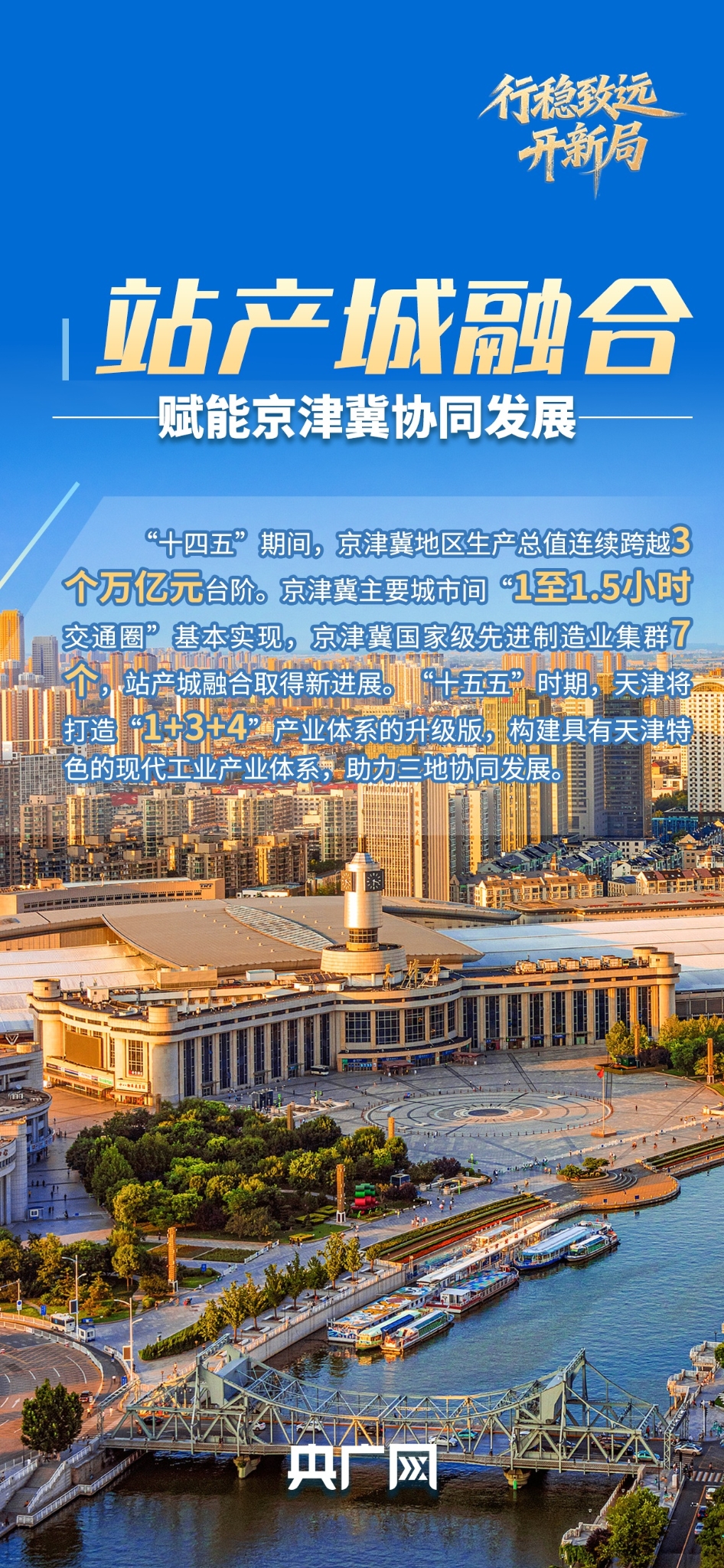 当“轨道上的京津冀”从蓝图变为实景,天津正以站为核、以产为基、以城为脉,将高铁枢纽的“流量”精准转化为高质量发展的“增量”,让一个个综合交通枢纽成为连接产城、辐射区域的重要节点,让站产城融合发展成为深度融入现代化首都都市圈的生动注脚,为“十五五”开好局、起好步凝聚起强劲的协同力量。