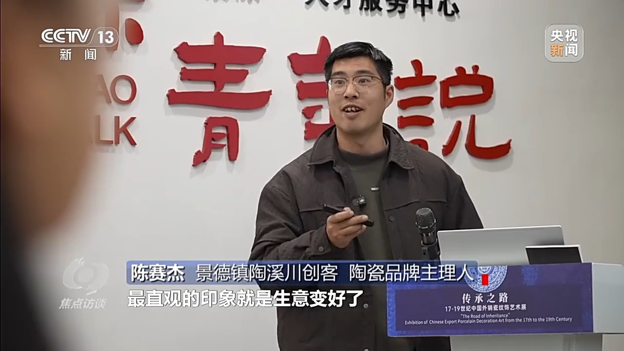 景德镇陶溪川创客、陶瓷品牌主理人陈赛杰:最直观的印象是生意变好了,我们做出来的系列产品很受大家的欢迎,庚庚可能是上天给我们最好的礼物了。