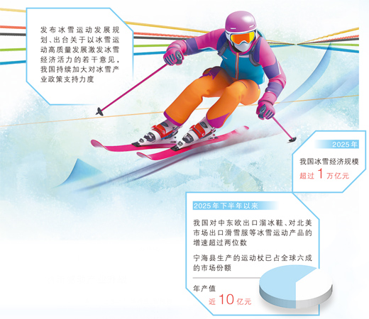 在米兰—科尔蒂纳冬奥会赛场周边,体育用品店货架上摆满了各类冰雪装备。拿起一根为滑雪运动新手准备的滑雪杖,“Made in China”几个英文单词引人注意。这根运动杖的“出生地”是浙江省宁波市宁海县,每年超过1500万根运动杖从这里出发,销往世界各地。