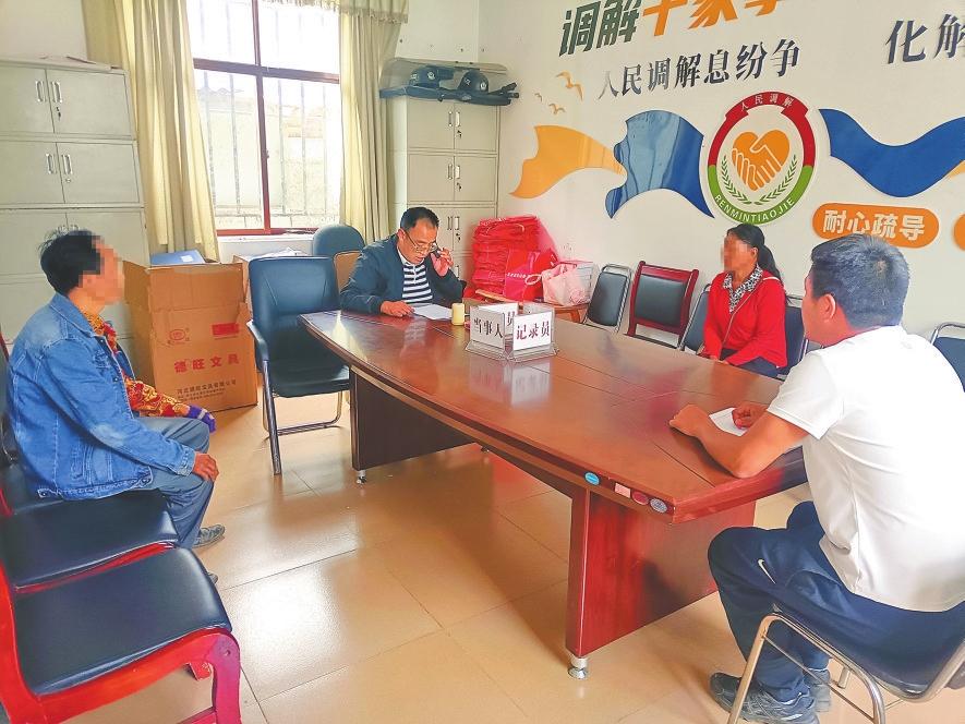 玉龙县石头乡综治中心工作人员调解婚恋纠纷。