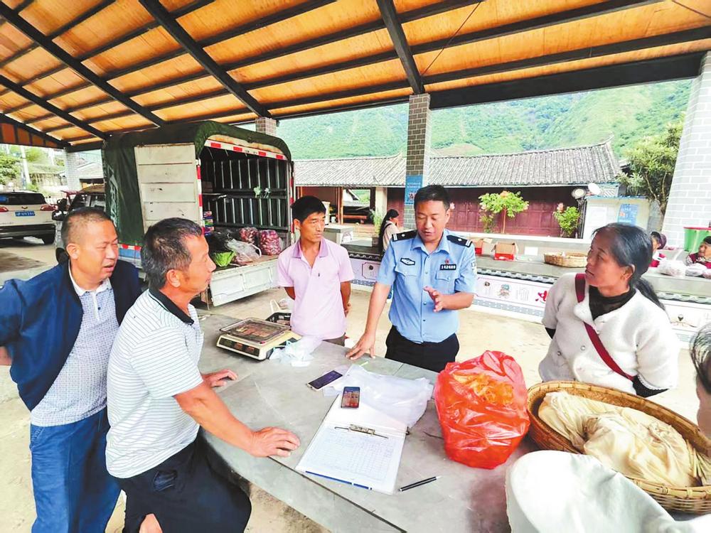 古城区金安镇综治中心工作人员在赶集日为群众普法。本版图片均由本报记者 和茜 摄