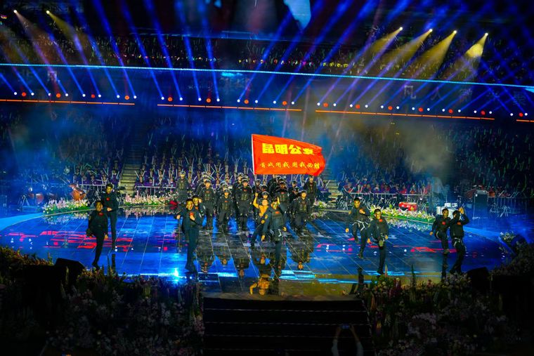 3月1日晚,“平凡亦能铸就非凡——我就是滇风”盛典晚会在昆明举行。舞台上,一面写有“首战用我 用我必胜”的红旗迎风招展,旗手孔武有力、肌肉硬朗,以震撼姿态亮相,全场观众共同见证昆明公安“云豹”力量,感受守护春城的硬核担当。