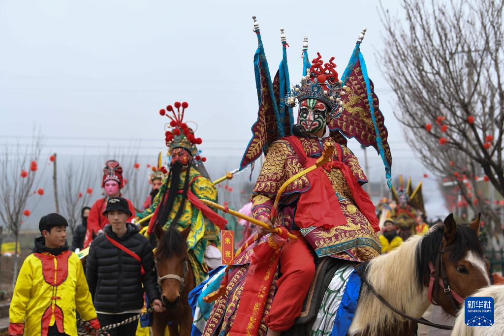 陇县古称陇州,是“中国社火文化之乡”,当地耍社火的历史可追溯至两千多年前。马社火以演员骑于马上而得名,是陇州社火最具代表性的形式之一。社火队由村民自发组成,每逢元宵节前,队员面绘脸谱,身穿戏服,骑于马上,于行进中演绎神话和历史故事,将新春祝福送至家家户户。