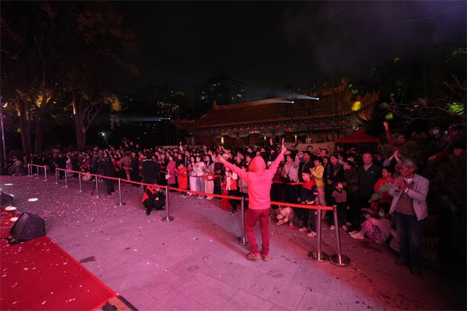 文艺展演精彩上演,整场晚会以“月下春城”“云梦花开”“骐骥呈祥”三个篇章层层铺展,打击乐合奏《科技先锋》、女声小合唱《这里是昆明》《今天日子好》、舞蹈《一路笙花》《花神献瑞》、戏曲表演《梨园滇风秀》、歌舞《我就是滇风》等精彩节目轮番上演。文庙红墙的灯火辉映下,民乐的清雅、交响的磅礴、戏曲的婉转、舞蹈的灵韵,与现场的观众共同汇成一幅光影交织、古今交融、生动鲜活的美妙画卷。