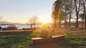 近日,在庾园拍摄滇池落日的市民惊喜地发现,草坪上新添了几组错落有致的休闲座椅,追逐落日的市民终于有了休憩歇脚之地。这一暖心细节立即收获市民与网友点赞,来自北京、河北、吉林、重庆等地的网友纷纷晒出自己在座椅上看日落的照片,分享他们在庾园度过的美好时光,并表示:“如果下次来昆明,还会到这里坐坐。”