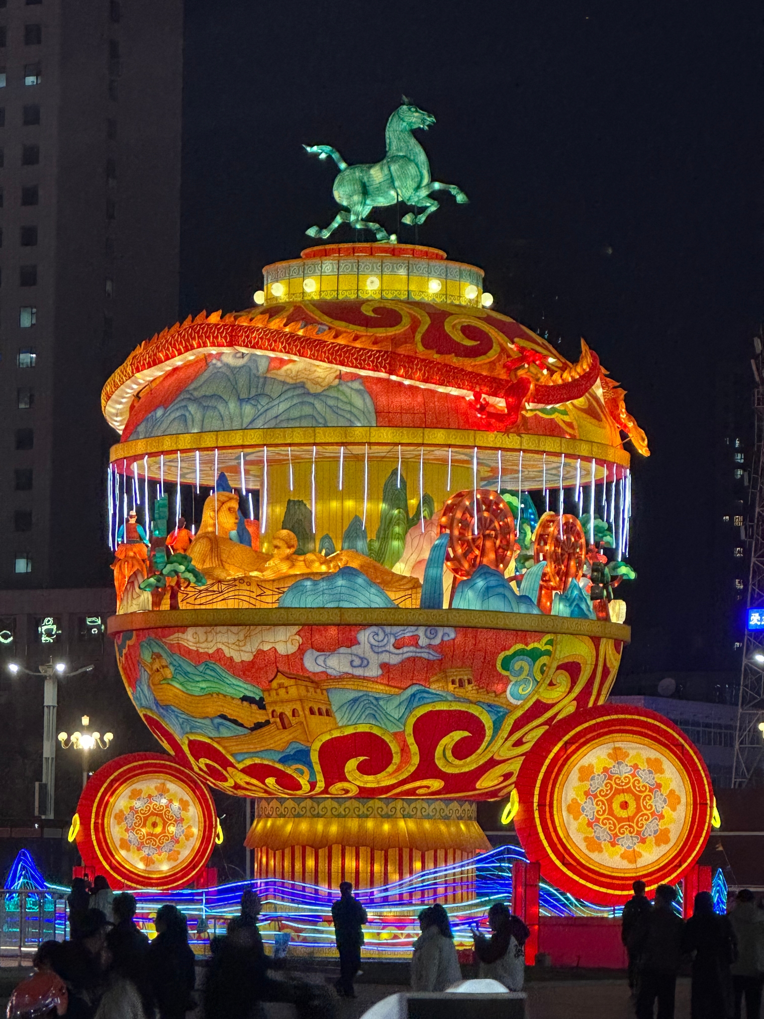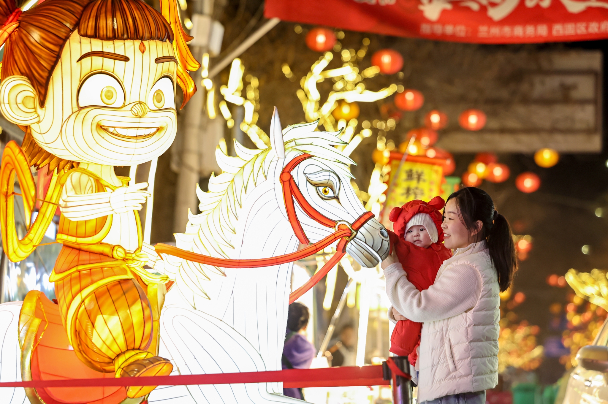夜幕低垂,华灯初上,兰州老街与西固金城公园化作灯的海洋。万盏花灯依景而设,马年主题灯组神采飞扬,传统宫灯雅致玲珑,七彩光影与古建飞檐、河畔夜色相融相映,星河璀璨,灯火阑珊。游人漫步灯影之下,笑语盈盈,举目皆是火树银花,俯首尽是人间烟火,将元宵之夜的浪漫与喜庆渲染得淋漓尽致。