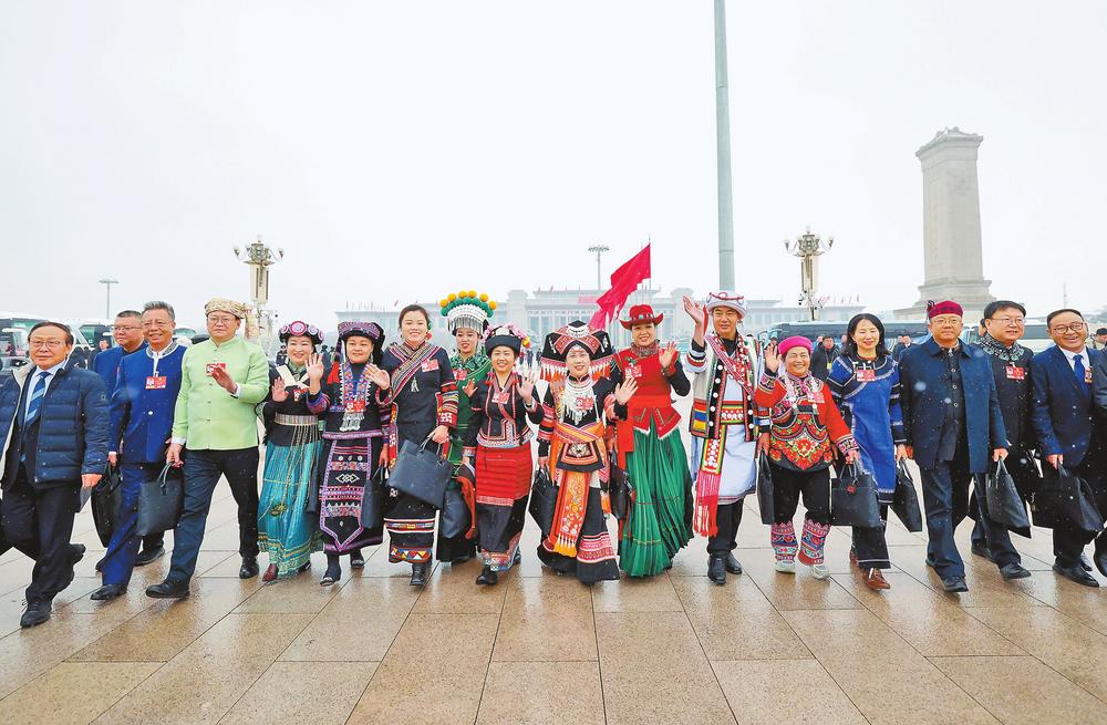 3月5日上午,十四届全国人大四次会议在北京人民大会堂开幕,云南代表团各族代表满怀激情步入会场。 本报记者 陈飞 摄