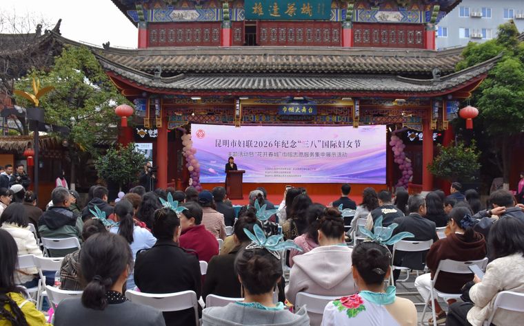 春城三月,繁花似锦;巾帼同心,志愿同行。3月6日,由昆明市妇联、市委社会工作部主办,盘龙区妇联承办、昆明雄达茶文化城协办的2026年“三八”国际妇女节主题活动暨“花开春城”巾帼志愿服务集中展示活动在昆明雄达茶文化城隆重举行。活动紧扣“实干开新局 巾帼建新功”主题,通过经验分享、特色展陈、文艺展演等多元形式,集中展现全市巾帼志愿服务成效,传递节日温暖,凝聚巾帼力量。