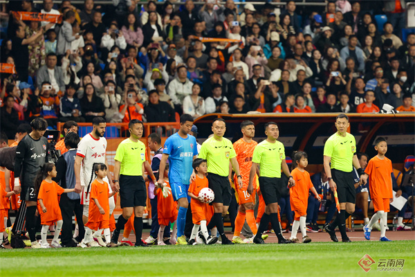 傍晚时分的云南玉溪高原体育运动中心体育场内早已人声鼎沸、热闹非凡。上万名球迷早早入座,他们喊出“玉昆队,加油!”的口号,用“橙色”热情点燃赛场。赛前的表演精彩纷呈,被网友称作“云南Bigbang”的本土组合“蹦山咔拉咔”现场带来劲歌热舞炒热赛场氛围。