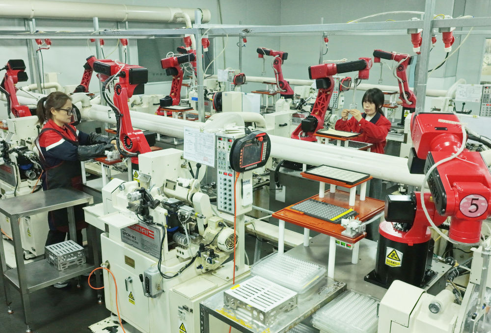 工人在位于湖北省秭归县的宜昌旌拓光学有限公司智能生产线上忙碌(2026年2月24日摄)。新华社发(王罡摄)