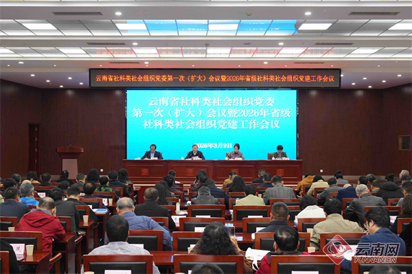 3月9日,云南省社科类社会组织党委第一次(扩大)会议暨2026年省级社科类社会组织党建工作会议在昆明召开。会议深入贯彻落实党中央关于加强新兴领域党建工作的决策部署和省委工作要求,切实履行省社科类社会组织党委的职责使命,总结去年工作,研究部署今年重点任务。