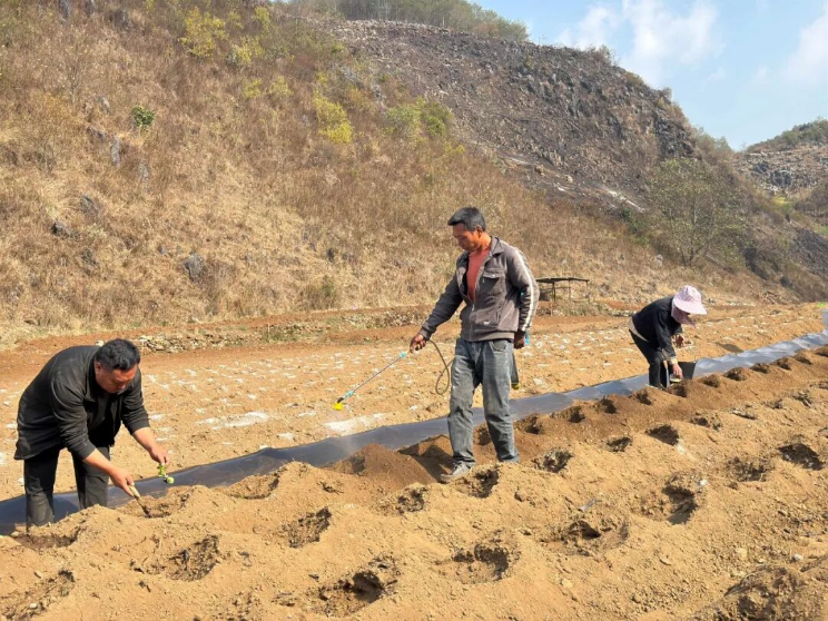 永德县崇岗乡村民进行整地、育苗、施肥。(来源:永德融媒)