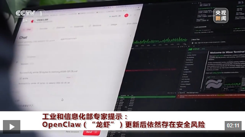 近期开源AI智能体OpenClaw (俗称“龙虾”)异常火爆,工业和信息化部专家今天提示,尽管“龙虾”智能体已经更新到最新版本,能修复已知的安全漏洞,但并不意味着完全消除安全风险。
