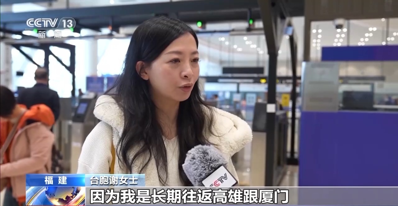 台胞谢女士:因为我是长期往返高雄跟厦门,在这边有工作。我觉得最方便的地方就是我们不用拿任何证件,只要刷个脸就可以过来,我觉得对我们这种做商业的话,它的时间成本降低非常多。