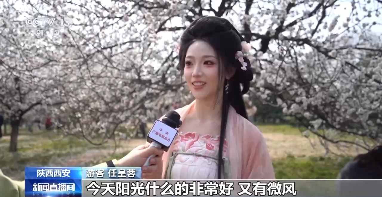 走进位于陕西西安的大明宫国家遗址公园,杏花、梅花、桃花、迎春花等数十种花卉次第开放,市民游客或拍照留念,或席地休憩,或用画笔记录下五彩的春色。