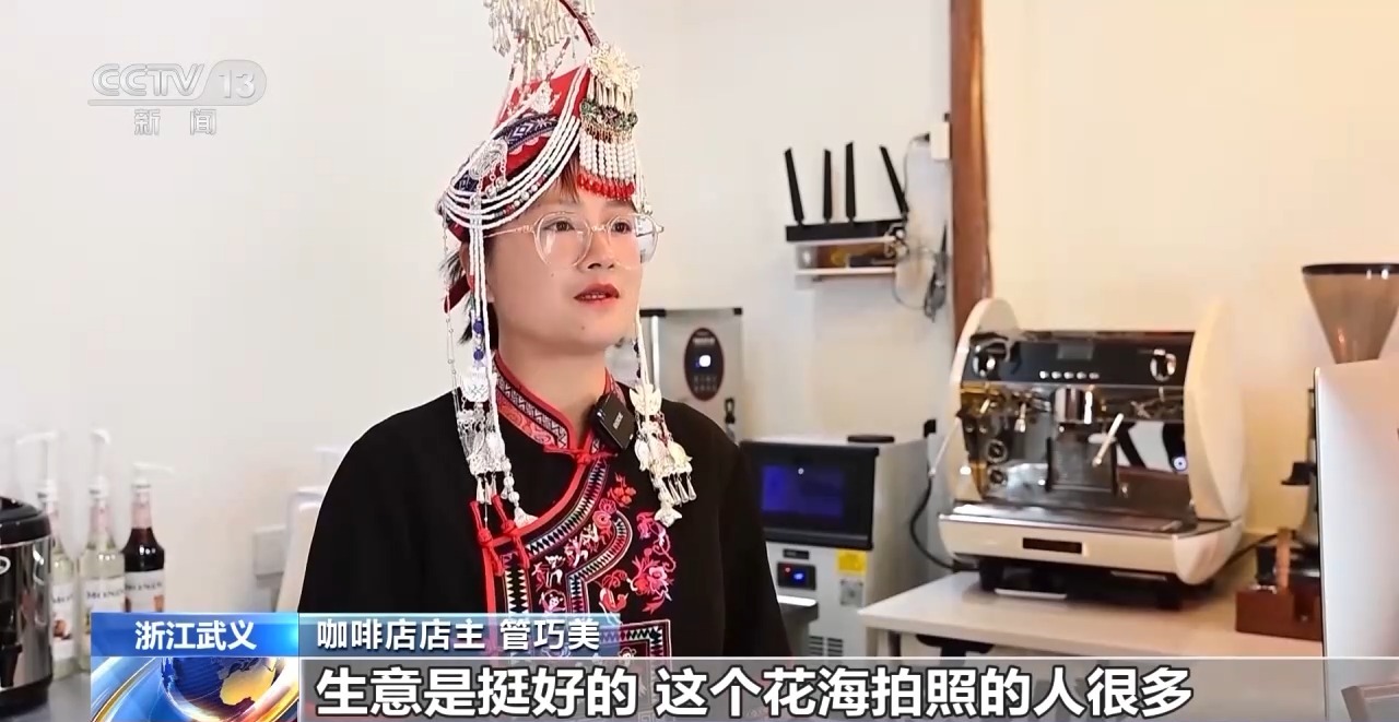 咖啡店店主 管巧美:生意是挺好的,花海拍照的人很多。