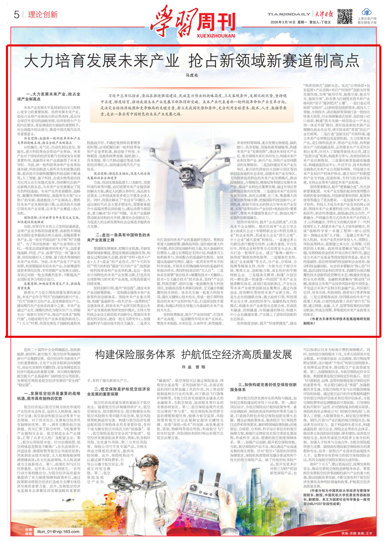 新质生产力是引领高质量发展的新动能,未来产业作为“明天”的战略性新兴产业、“后天”的新兴支柱产业,是发展新质生产力、建设现代化产业体系的重中之重。未来产业通过产业化、规模化转化为现实生产力,将催生出一批新兴支柱产业,推动产业体系“新陈代谢”,为建设现代化产业体系提供新动力。“十五五”时期,我国发展处于战略机遇和风险挑战并存、不确定难预料因素增多的时期,必须把握住新一轮科技革命和产业变革机遇,推动量子科技、生物制造、氢能和核聚变能、脑机接口、具身智能、第六代移动通信等成为新的经济增长点,加快建设现代化产业体系。