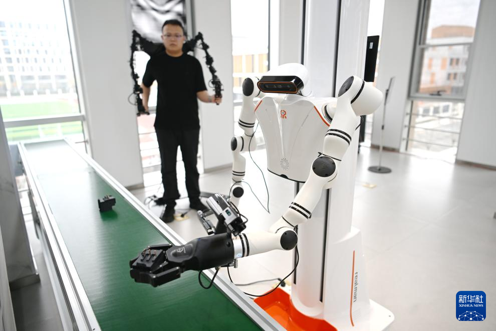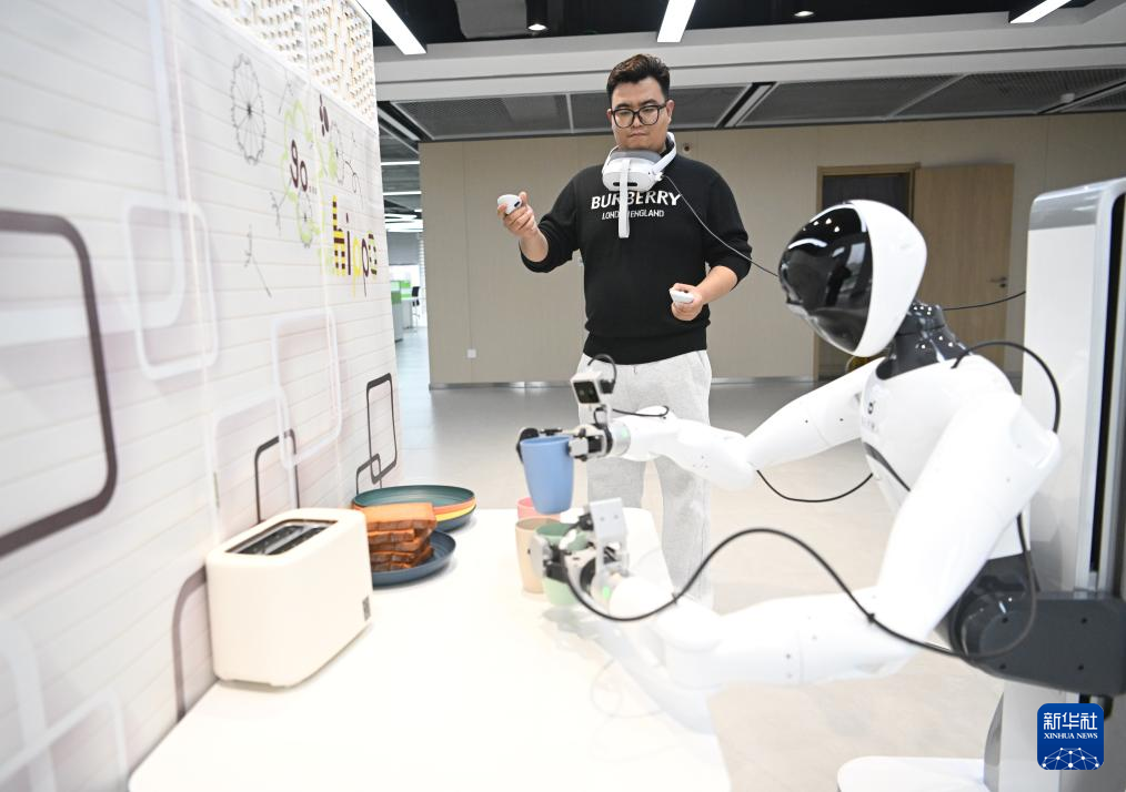 日前,中国雄安集团数字城市科技有限公司具身智能训练场正式投入使用,该训练场采用1∶1实景还原,打造了机器人迎宾导览、工业搬运、家居生活、商业零售、物流装配五大真实场景,开展常态化真机数据采集与标注,收集到的数据向社会开放,助推具身智能技术在城市复杂场景中的规模化应用与商业化落地。(新华社 记者朱旭东 摄)
