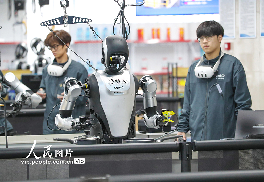 目前,这个1500平方米的训练场有31台机器人。而像陈云龙这样的“00后”数据采集师,正是机器人成长路上的“启蒙老师”——他们用耐心为人工智能注入“技能经验”,也在这新兴产业中,找到属于自己的舞台。(人民图片网 张进刚 摄)
