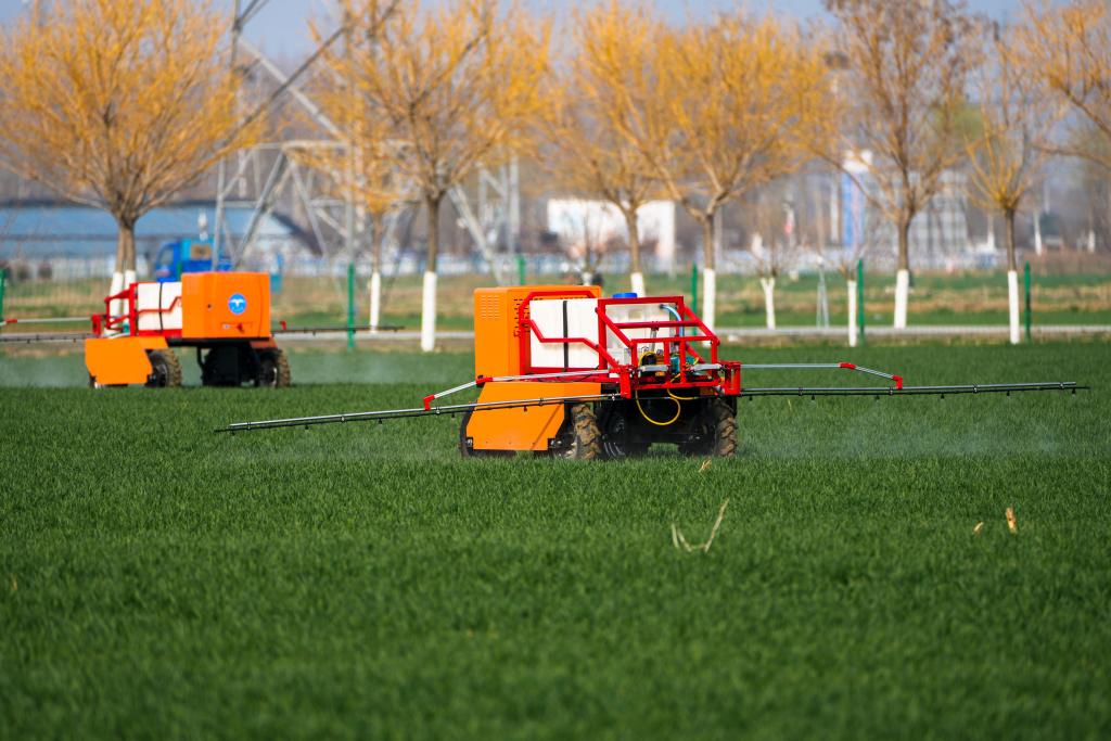 3月9日,在山东省肥城市安驾庄镇洼里无人智慧农场内,由山东农业大学团队自主研制的智能农机装备在田间穿梭,助力春耕生产。新华社记者 朱峥 摄