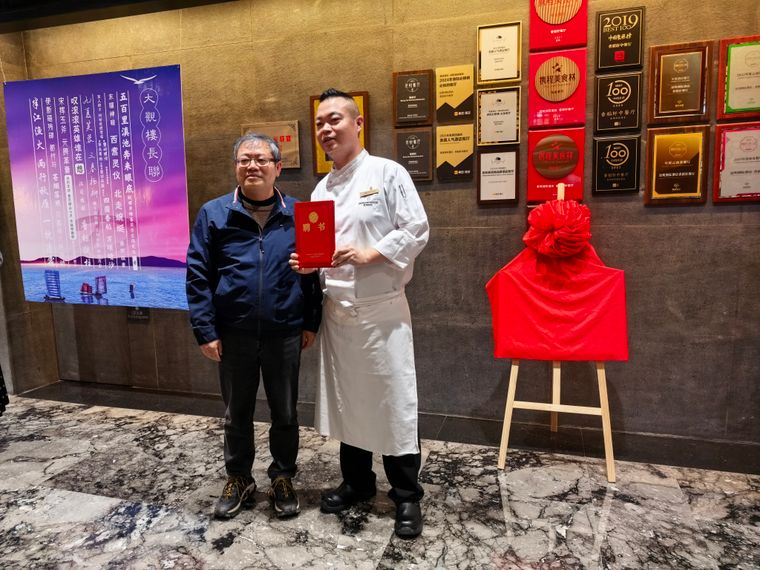 在简朴而热烈的氛围中,首任轮值组长、昆明洲际酒店行政总厨苟顺年从中心主任手中郑重接过了聘书。