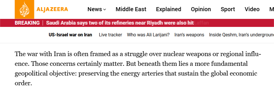 半岛电视台的报道称,最近的事态发展表明,另一种更深层次、美国政府由来已久的“石油逻辑”正在发挥作用。美国的根本目的是控制资源,保障石油的流动性,这是全球资本主义经济的命脉。