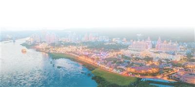 云南省西双版纳傣族自治州景洪市告庄西双景星光夜市灯火通明。吕华当摄(人民图片)
