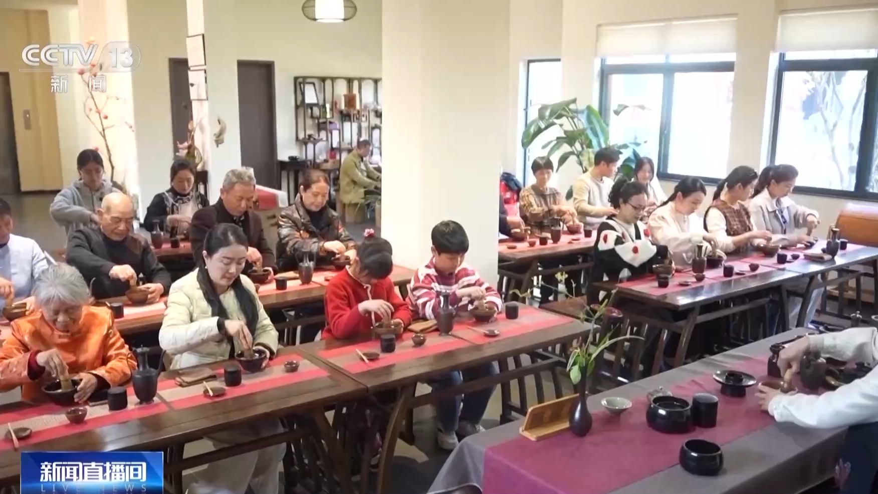 各地游客在指导下,学习注水、调膏、击拂,以清水为墨、以茶汤为纸,慢慢写出福字和茶字,体验茶百戏的奥妙。