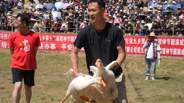 为期三天的活动好戏连台,群众参与热情高涨。大三弦、霸王鞭等民族歌舞轮番上演,欢快旋律、奔放舞姿,展现出九乡儿女昂扬向上的精神风貌。斗牛场内,牛蹄铿锵、气势如虹;摔跤赛场,力量与技巧碰撞,尽显阳刚之美;抓大鹅、老公背媳妇等趣味项目妙趣横生,现场掌声、欢呼声此起彼伏。各族群众同场竞技、携手联欢,在文化交融中凝聚合力,在守望相助中增进情谊。
