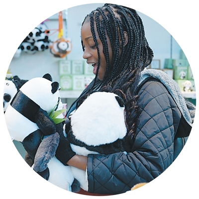 考察团成员艾斯特拉尔在中国大熊猫保护研究中心都江堰基地挑选纪念品。陈春安摄