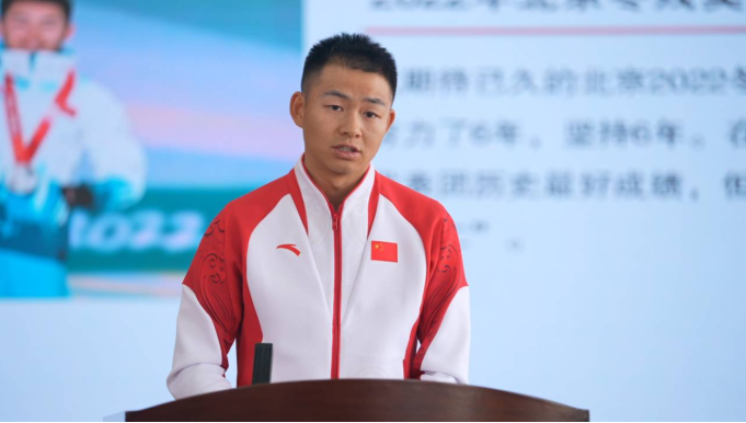 宣讲现场,蔡佳云深情讲述了自己的奋斗历程。因意外致残的他,曾一度陷入自卑与封闭的困境,在被云南省残联选中后,毅然踏上冰雪赛场。面对严寒酷暑、伤病磨砺,他从未停下追梦的脚步,从北京冬残奥会斩获两银一铜,到米兰冬残奥会勇夺三金、担任中国代表团闭幕式旗手,用汗水与坚持书写了残疾人运动员的传奇。他用朴实真挚的话语勉励在场学子:“坚持就是胜利,付出总有回报,年轻人要心怀理想、勇于担当、找准方向、奋力拼搏,越努力就会越幸运。”