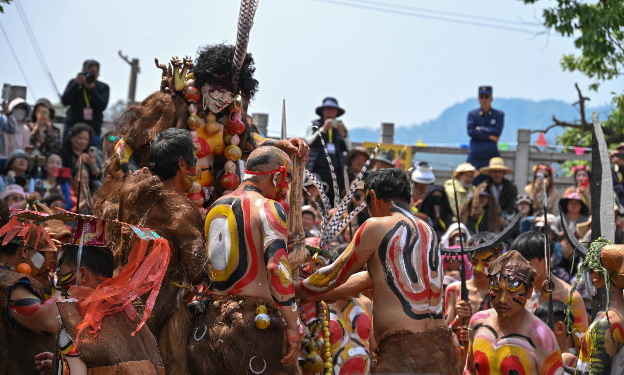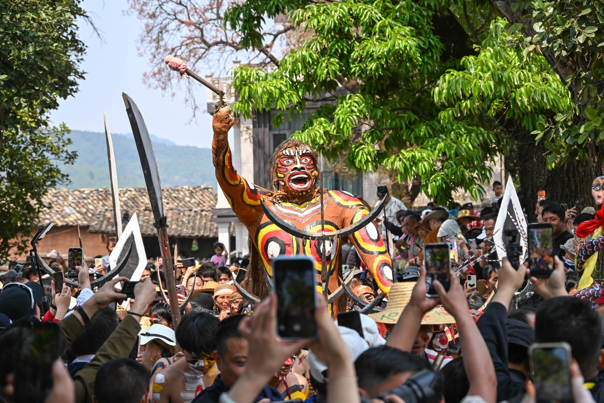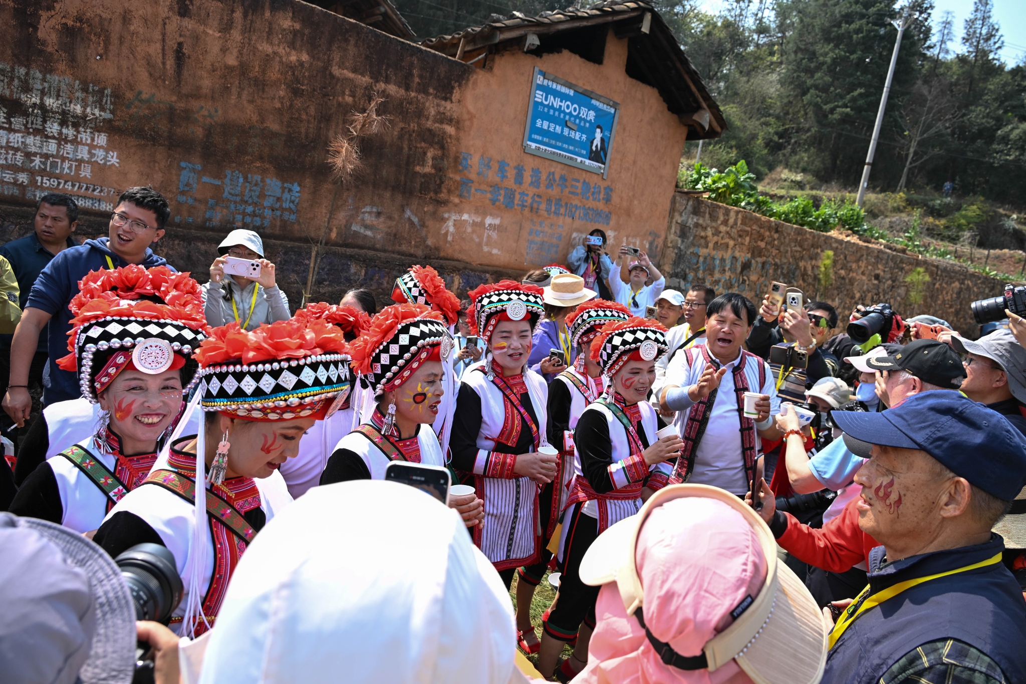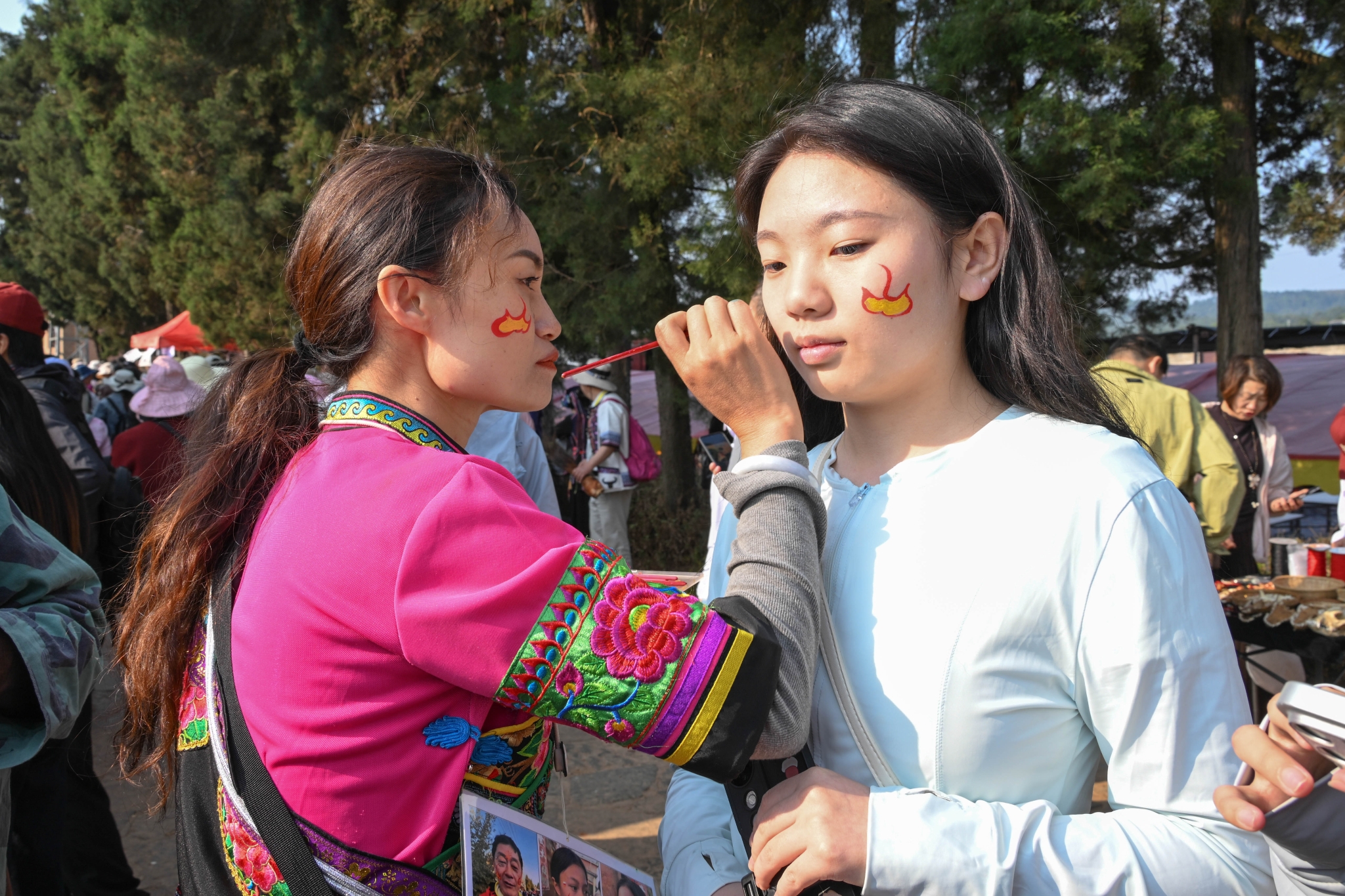 彝族彩绘同样受到欢迎。村民为游客在脸上、手臂上绘制火焰、图腾等图案,游客纷纷前来打卡拍照,定格这份独特的民俗记忆。村巷间,阿细跳月表演随处可见;豪放的舞步与激昂的旋律,尽显阿细民族的豪迈与灵动。