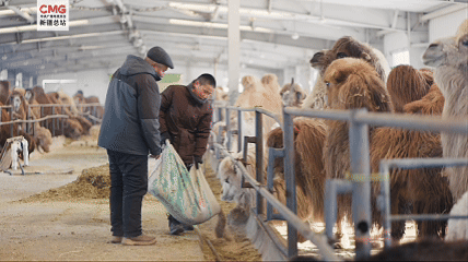 在规整干净的标准化养殖棚圈,骆驼、牛羊正安静吃草。曾经游牧的辛劳变成家门口的日常劳作。对于在小镇定居的孩子们来说,童年时光也更加丰富多彩。现在,家门口有了学校、卫生院,孩子们有书读、老人看病不出镇。定居还带来更多增收的可能。