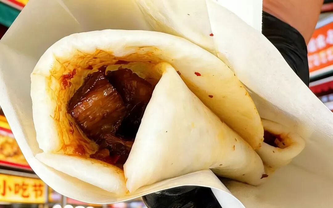 他们以本地特色美食烧饵块为灵感,裹入自家招牌的标准化炖烤红烧肉,创新推出烧饵块夹红烧肉,成为小吃节的新晋亮点。杜双透露,若本次小吃节推出的烧饵块夹红烧肉能受到购买者的喜欢,并且销量持续向好,公司计划在巍山开设长期门店,让这道南北结合的新滋味,成为巍山美食版图上的常驻风景。