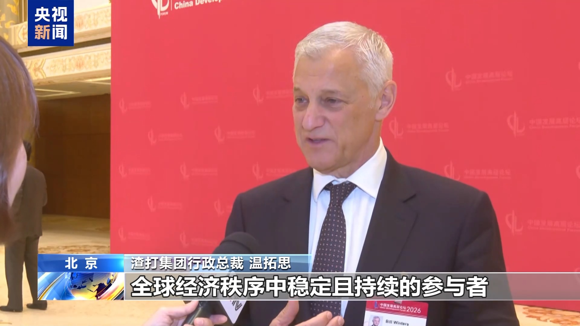 渣打集团行政总裁 温拓思:中国始终是全球经济秩序中稳定且持续的参与者,我感到鼓舞的是,中国将继续保持增长势头,并持续成为全球经济增长的重要引擎,从而推动全球贸易体系持续发展。(总台央视记者 杨曜语 宋菀 刘柏煊 刘佳昕 孙茜)