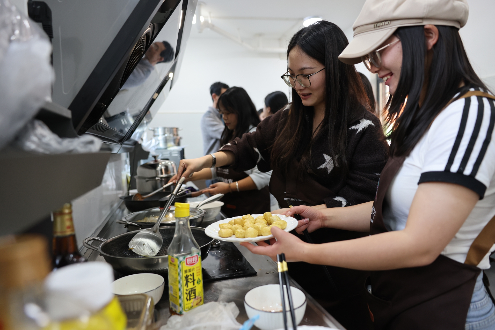 不少学生表示,有了共享厨房,以后点外卖、外出聚餐的次数会减少,课余与周末时间更愿意约上室友、朋友“开火”,在动手烹饪中享受美食、放松心情,也在协作中增进彼此的情谊。(记者杨质高 实习生施雨 文 王宇衡 周柯妤 实习生 吴任婕 摄)
