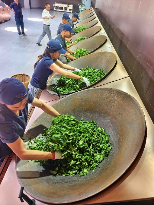 记者也戴上手套,亲自体验了炒茶杀青的工序,在师傅的指导下翻炒鲜叶,亲身感受传统制茶工艺的魅力。