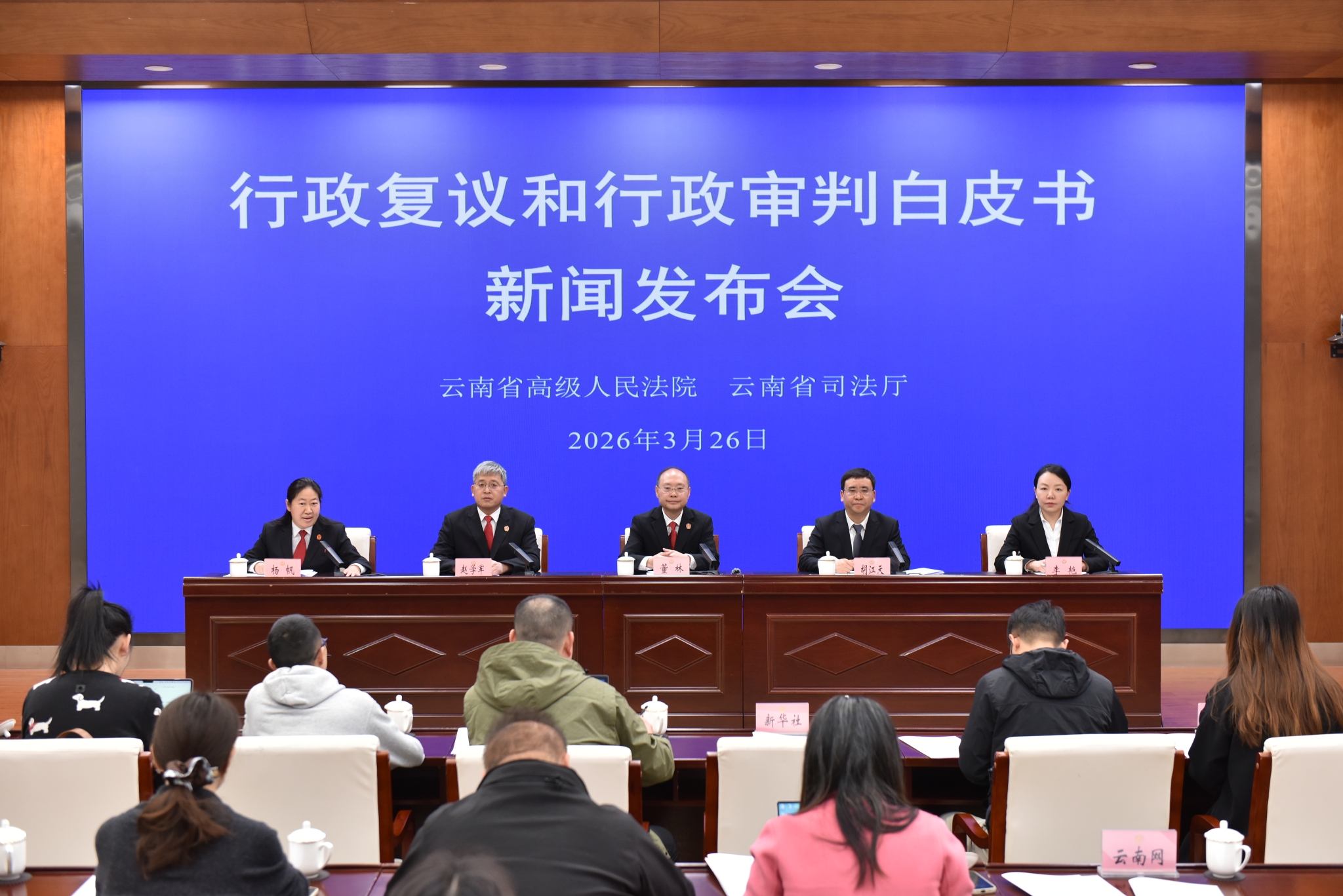 3月26日,云南省高级人民法院、云南省司法厅联合召开新闻发布会,共同向社会发布2025年度云南省行政复议和行政审判白皮书。